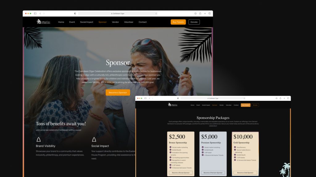 Our team then refined the prototype to better capture the ‘Caribbean vibes,’ infusing it with a fun, festive atmosphere while maintaining informative content for users. We also ensured that sponsors and donation call-to-actions were prominently placed to maximize engagement and opportunities. Overall, the average number of clickthroughs to accomplish tasks dropped by 50%.